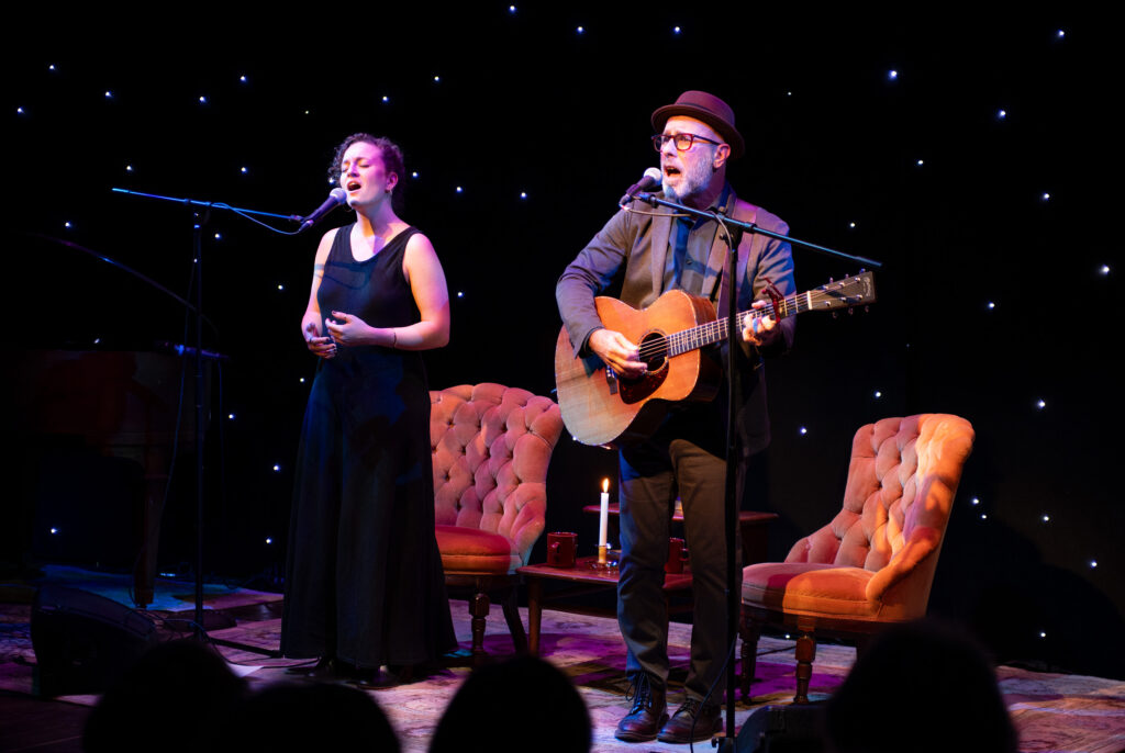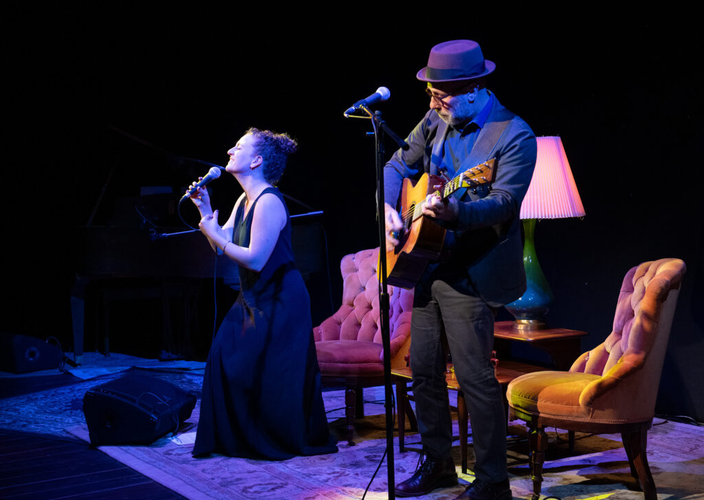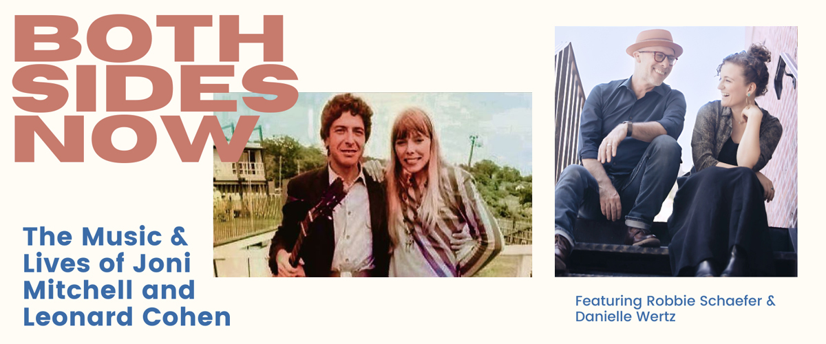 “Two singer-songwriters sit on the edge of a cliff…” With these words, we are drawn into the world of BOTH SIDES NOW – a theatrical concert that explores the music and lives of long-time friends and one-time lovers, Joni Mitchell and Leonard Cohen. Created by, and starring Robbie Schaefer and Danielle Wertz, the cabaret-style performance traverses decades alongside songs such as A Case of You, Hallelujah, Big Yellow Taxi, Suzanne, and many more. Both Sides Now is at once a piece of the 60’s and 70’s, and of right now — offering us a story about the messiness of being human, of lives persistently lived at the edge of growth, and of finding the courage to turn toward one another, again and again.